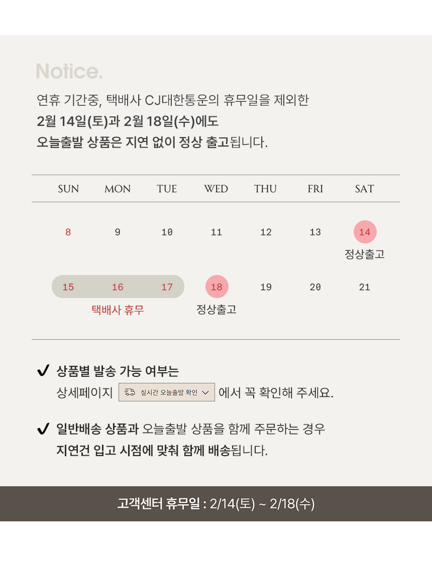 • 3. ¼ÒÀÓÀÇ ¹è¼Û¾÷ü´Â CJ´ëÇÑÅë¿îÀÌ¸ç ¹è¼ÛÀº ÁÖ¹® ÈÄ ÆòÀÏ ±âÁØÀ¸·Î Æò±Õ 2~3ÀÏ Á¤µµ ¼Ò¿äµË´Ï´Ù.